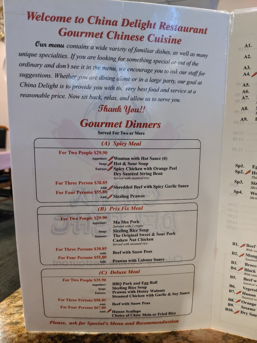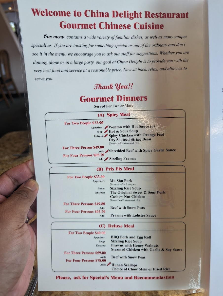 China Delight Menu